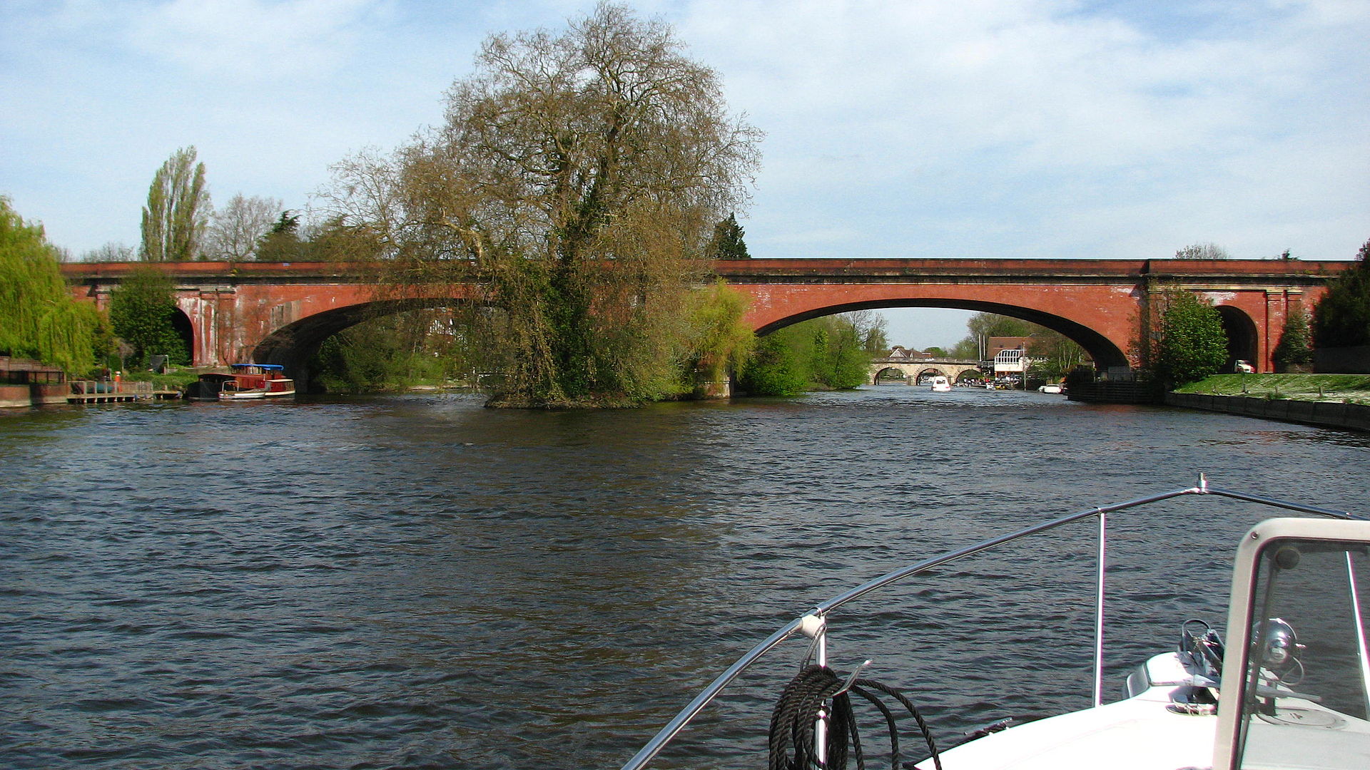 Maidenhead Railway Bridge (also known as Maidenhead Viaduct, The Sounding Arch) is a single structure of two tall wide red brick arches buttressed by two over-land smaller arches carrying the Great Western main line (GWML) over the River Thames between Maidenhead, Berkshire and Taplow, Buckinghamshire, England. It crosses the river on the Maidenhead-Bray Reach which is between Boulter's Lock and Bray Lock and is near-centrally rooted in the downstream end of a very small island.